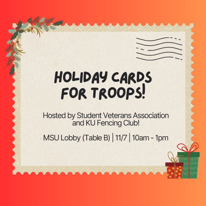 Hosted by KU’s Military & Veterans Services and partnering campus offices. Community events are included. All events are free and many are open to the public, unless noted.