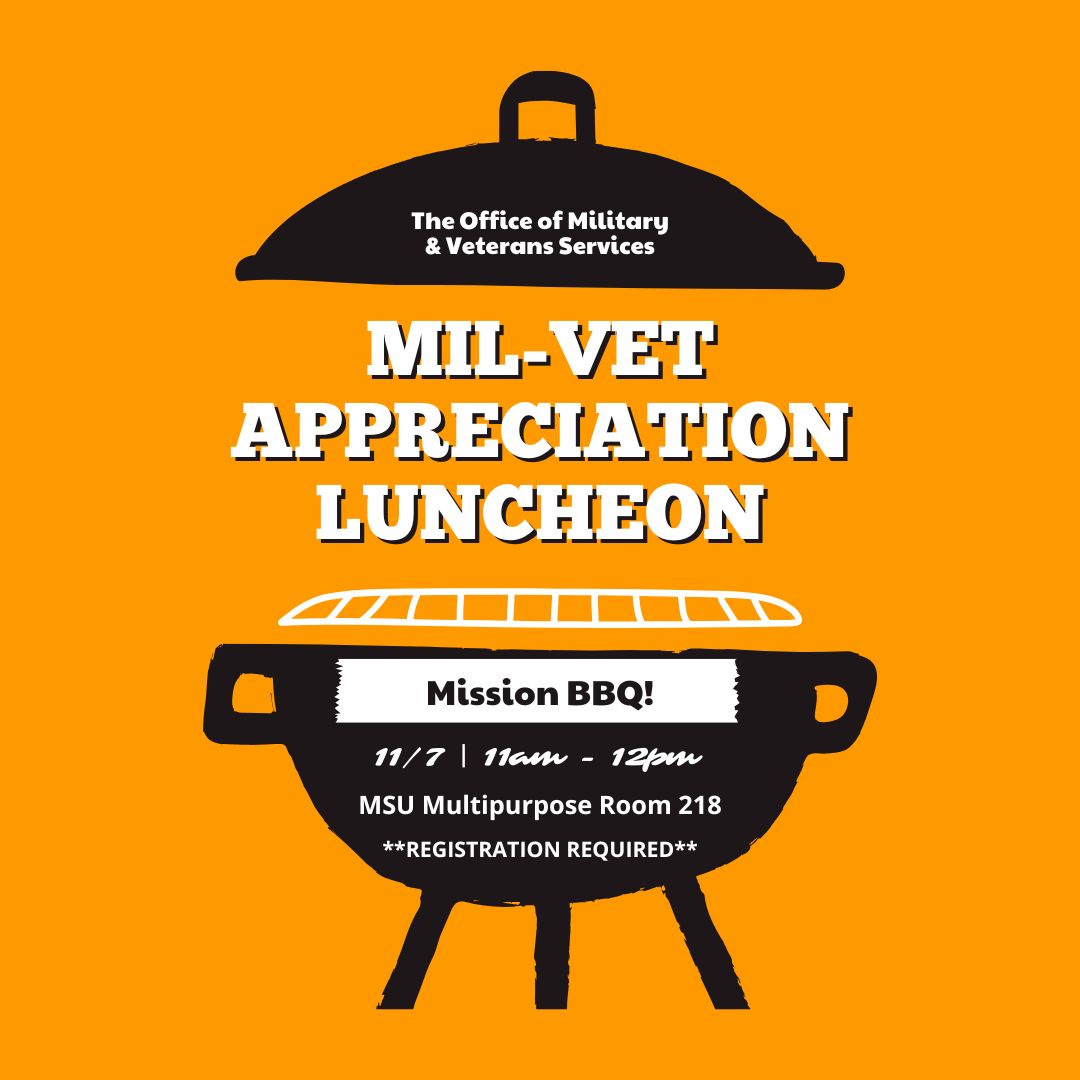 Students, faculty, and staff are welcome to celebrate the service of our MilVet students over lunch and participate in activities supporting the military community.