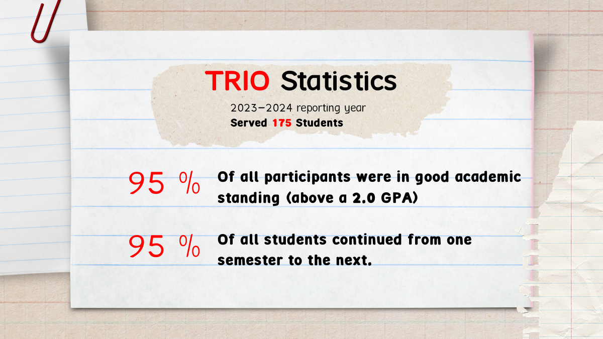 TRIO Student Support Services is a federally funded program that assists students in reaching their post-secondary academic goals.