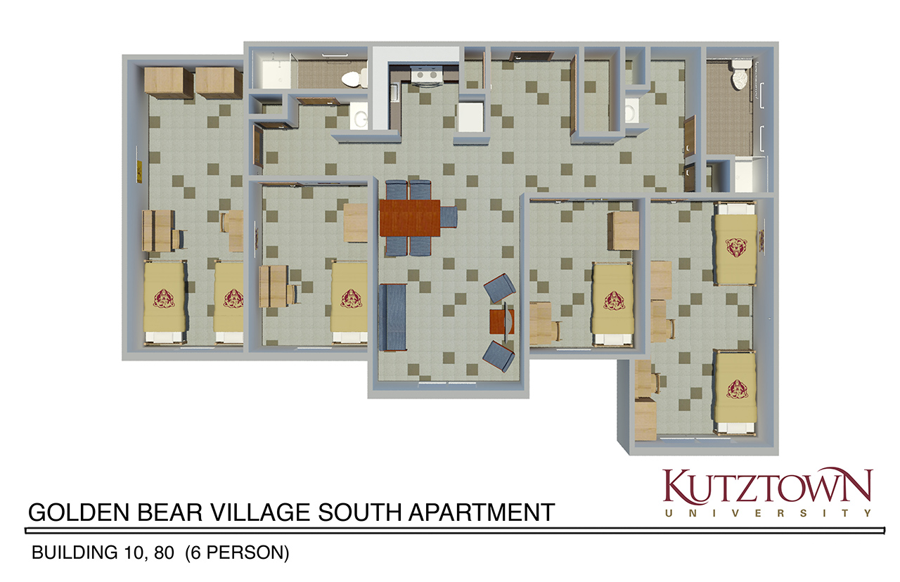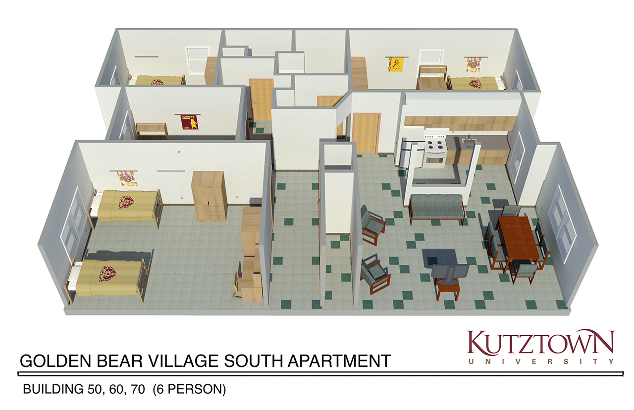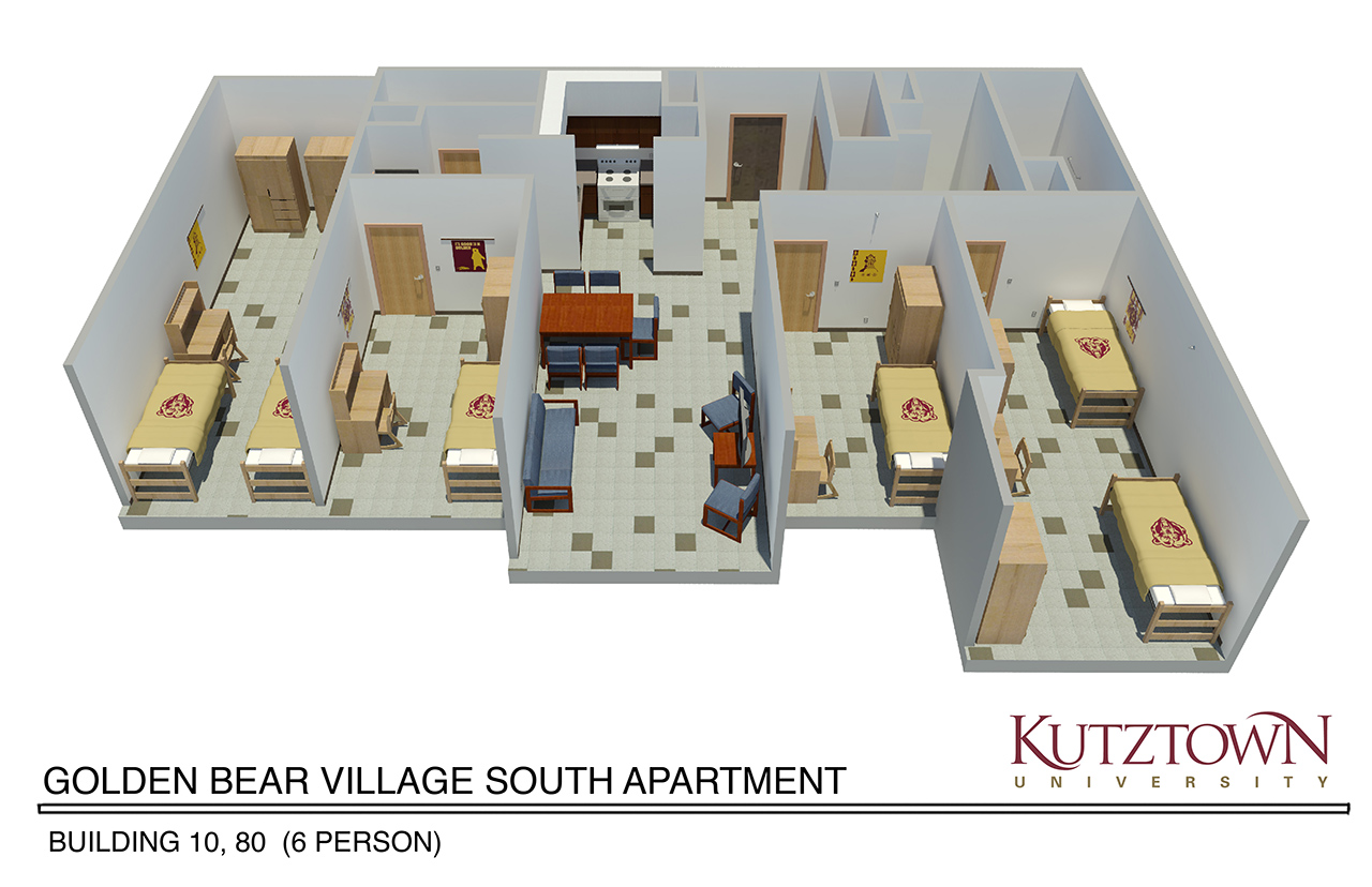 Take a closer look as we take you on a walking tour of our upperclassmen apartment-style complex, Golden Bear Village South at Kutztown University.