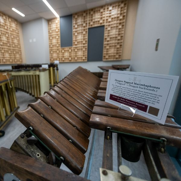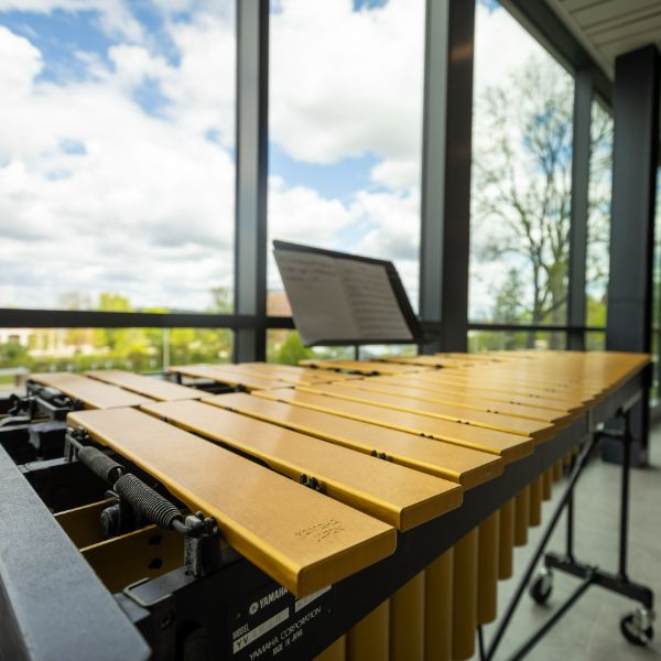 Some of the mallet percussion instruments found inside the Wells-Rapp Center