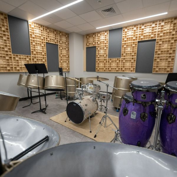 Inside the Wells-Rapp Center are various rooms for percussion instruments.
