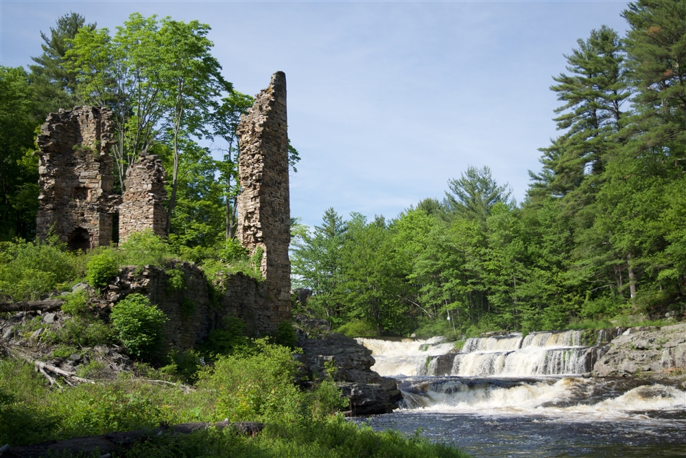 Built in the early nineteenth century, remains of John Stoddart's gristmill still stand alongside the Great Falls of the Lehigh River in northeast Pennsylvania.