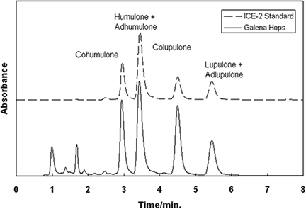 Chromatogram of alpha- and beta-acids in hops