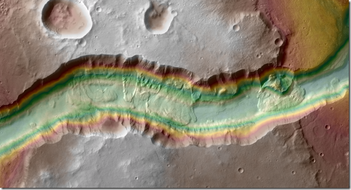 Dr. Erin Kraal works on Martian Surface Processes and Sediment Transport in Local Watersheds. Jenae Shoup (KU undergraduate physics major) and Dr. Kraal are working on modeling and mapping a set of small landslides in a channel on Mars.