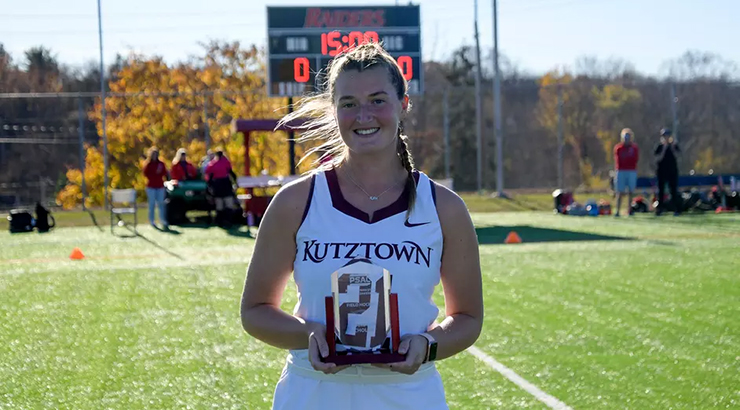 Prior to Friday's Pennsylvania State Athletic Conference's semifinal round games at Shippensburg, graduate student Sarah Gatehouse of the Kutztown field hockey team was recognized as the 2024 PSAC Champion Scholar.