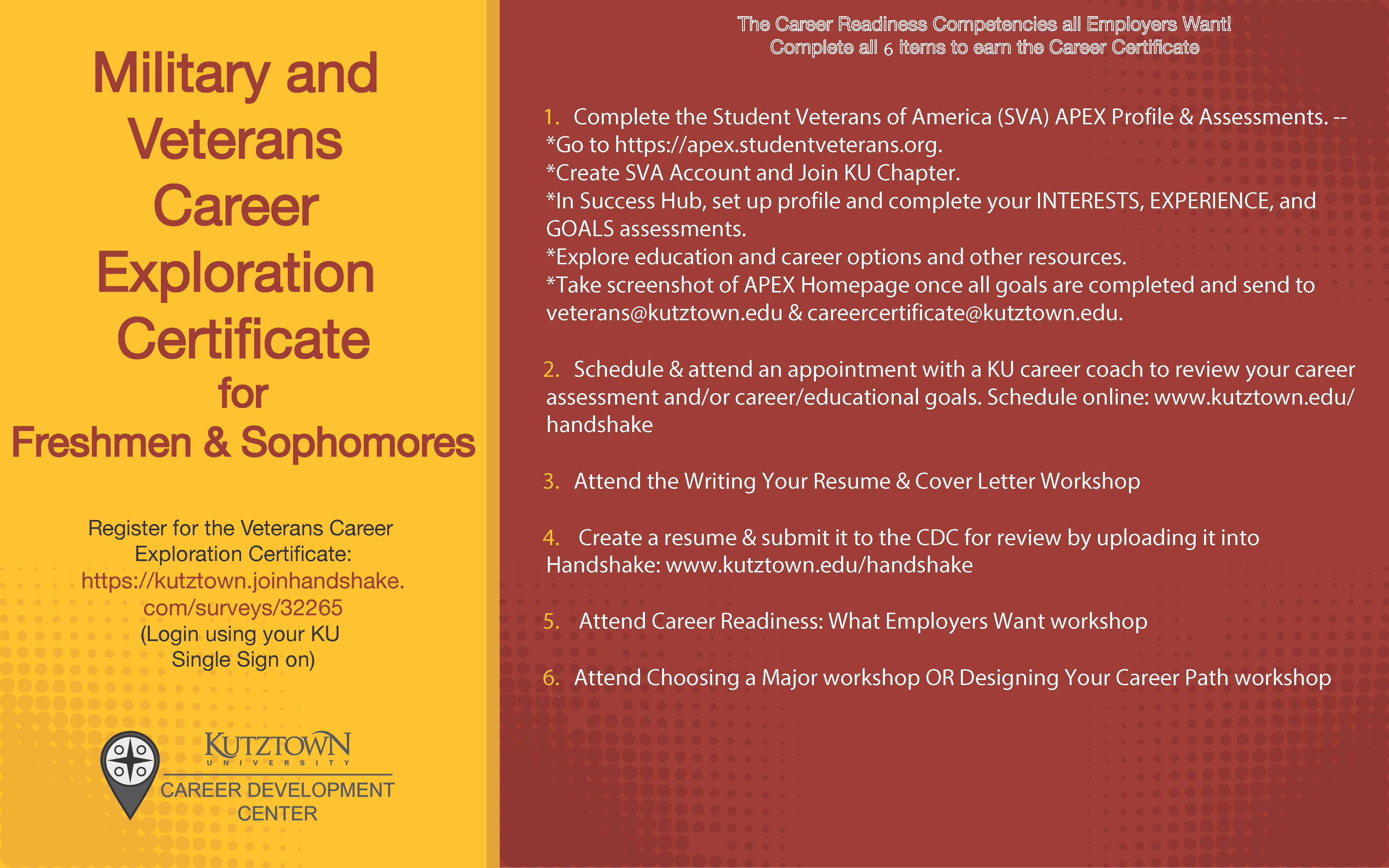 KU's Career Center has created a career readiness certificate for our freshmen and sophomore Military & Veteran students.
