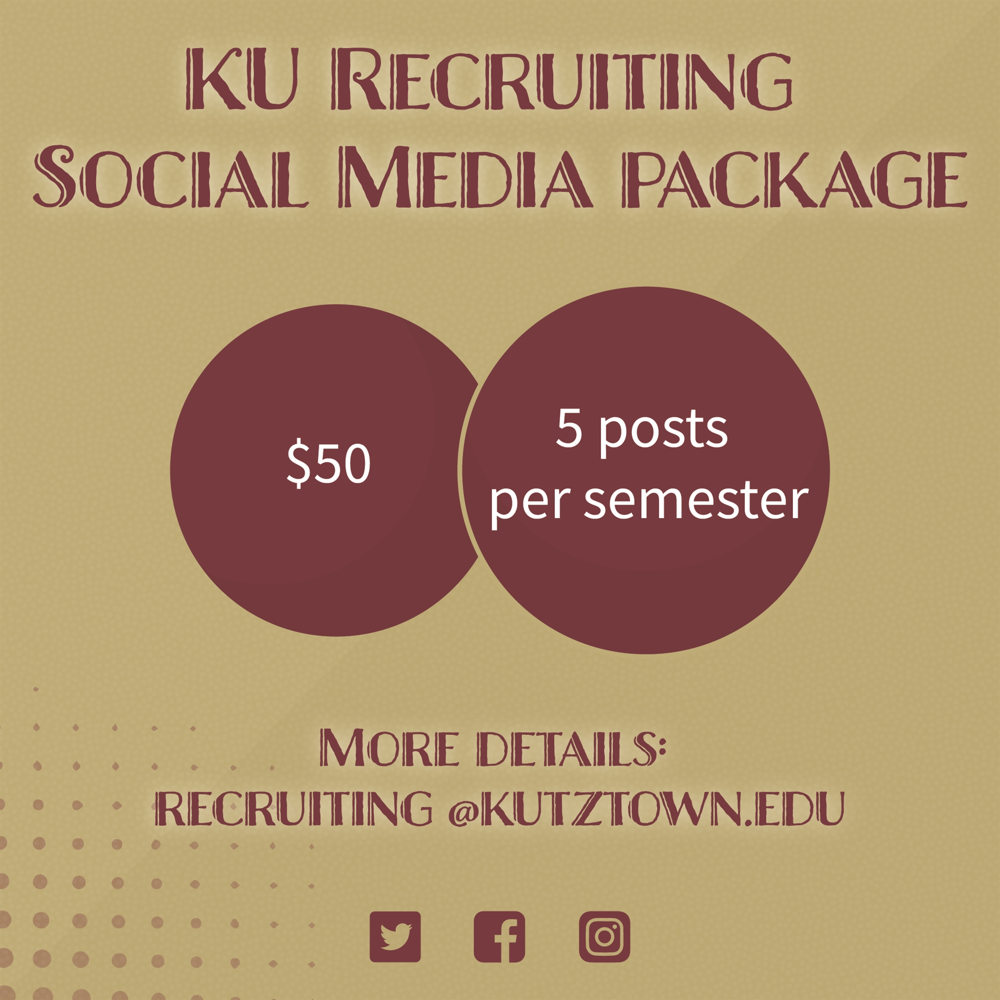 Reach out to recruiting@kutztown.edu to inquire about our current social media packages
