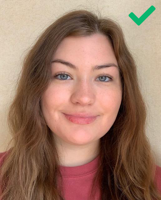 - Must be taken straight-on with your eyes looking directly at the camera (no angled or profile pictures)