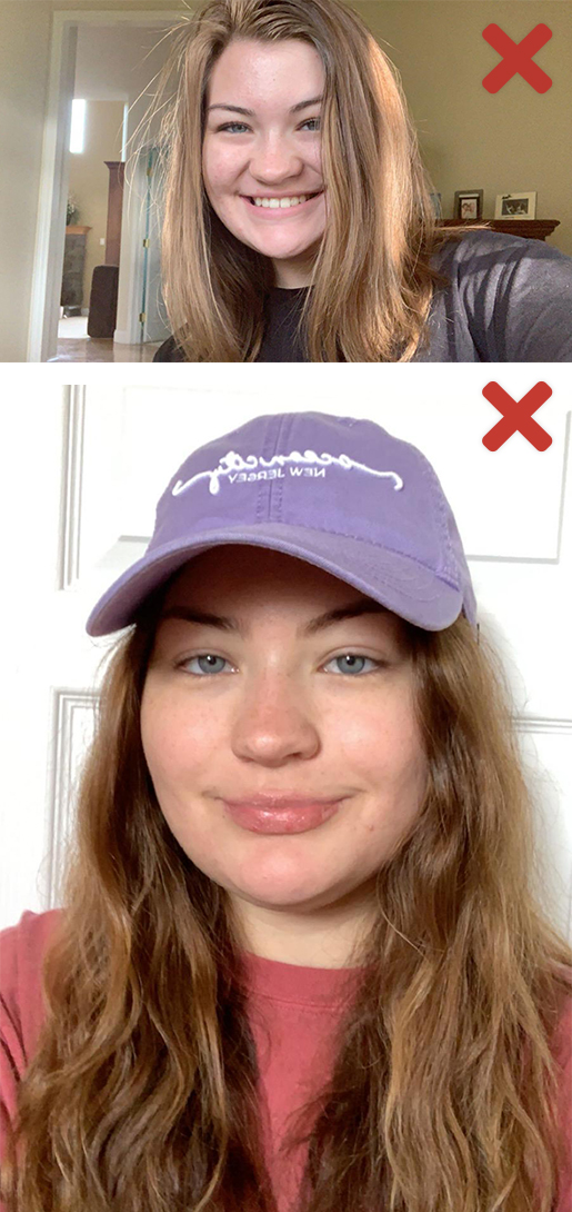 - No hats, sunglasses, animals, props, additional persons, jewelry or garments that obstruct a clear view of the face, photo filters, red-eye or camera flash reflections
