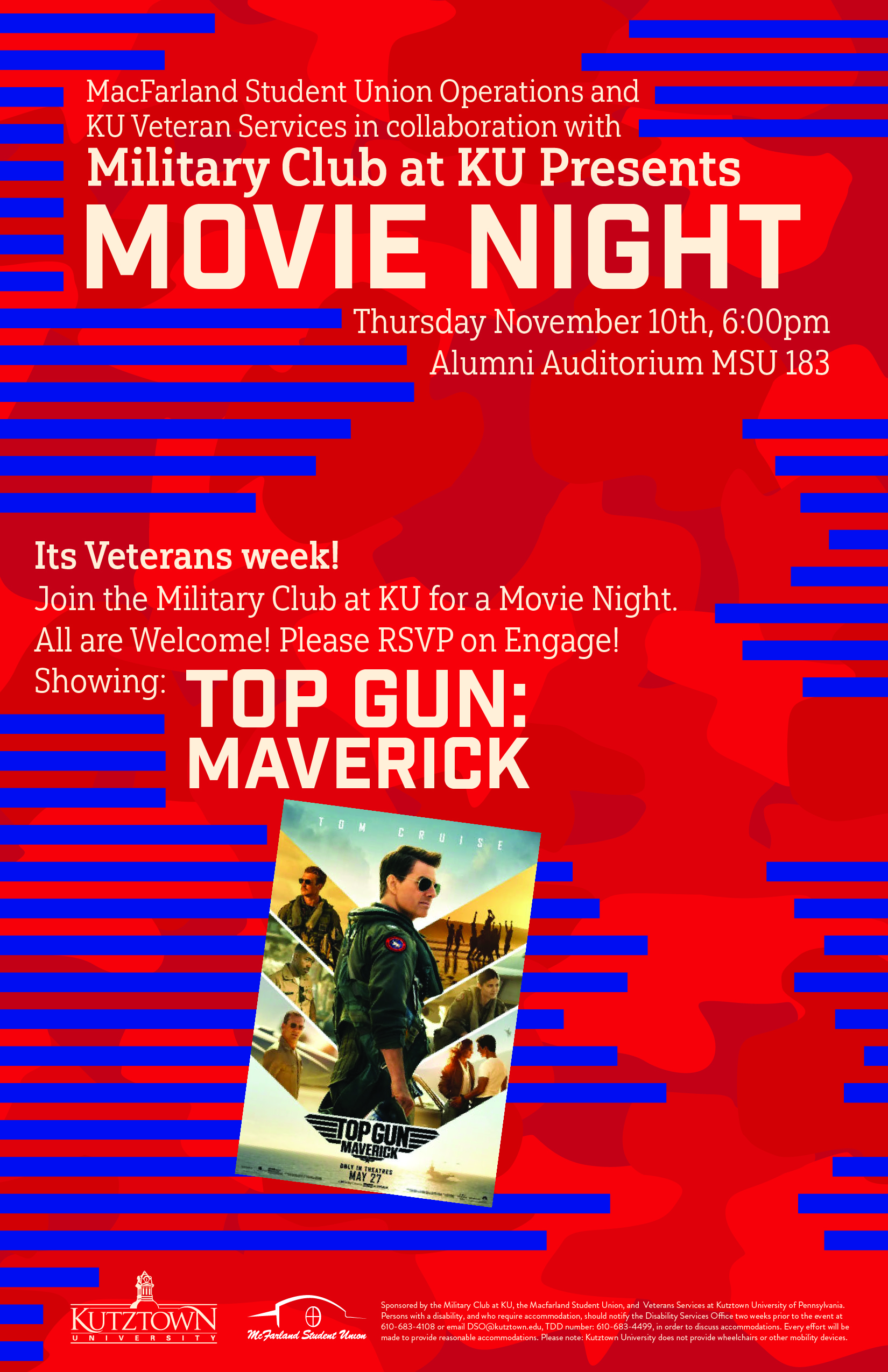 Join us in viewing a military-themed film, sponsored by the Student Veterans Association (SVA). Attendees are welcome to participate in an open forum after with KU military-affiliated students.
