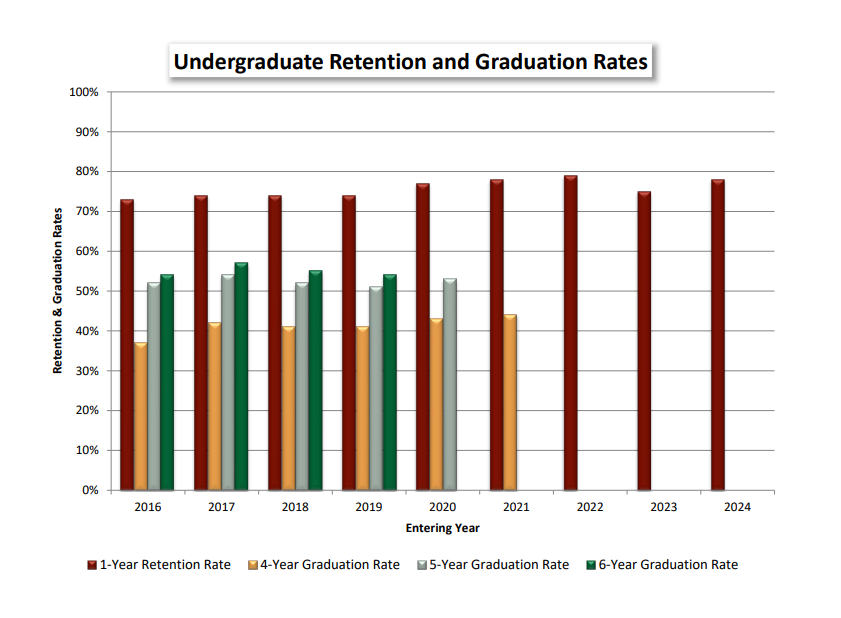 The chart within the link below illustrates the Kutztown University Graduation and Retention rates from 2016 to 2024, provided by the Instutional Research Department here on campus.