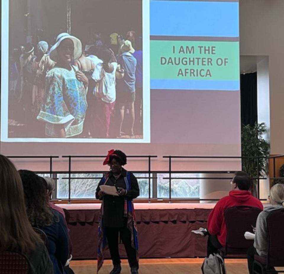Dr. Brenda Muzeta, Asst. Prof. of Special Education, presents "I Am the Daughter of Africa" for Ujima 2023