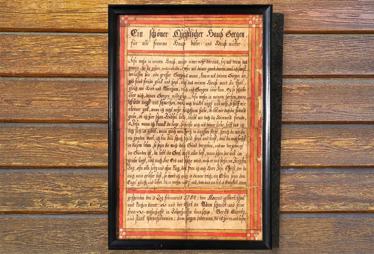 Conrad Gilbert Fraktur House Blessing: Brunswick Township, Schuylkill County, 1784