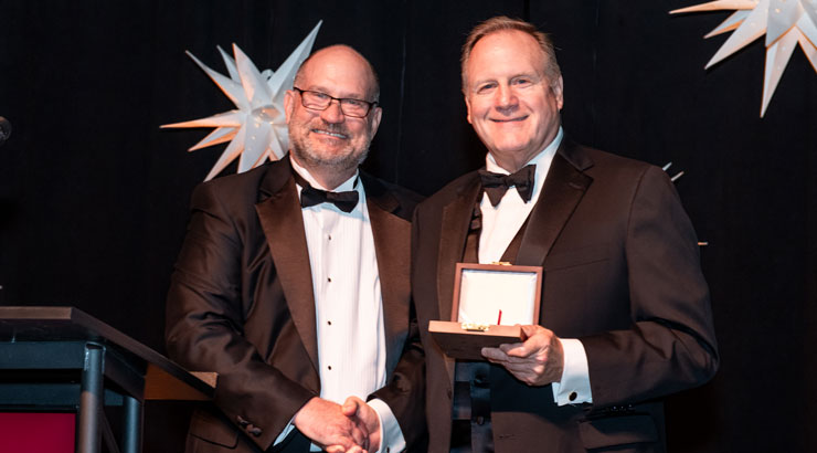 Scott A. Dorn ’79 and Robert C. Landis were presented with Kutztown University President’s Medals for their leadership as Kutztown University Foundation Board presidents during the university’s largest comprehensive campaign in school history, Together, We’re Golden: The Campaign for Kutztown University.