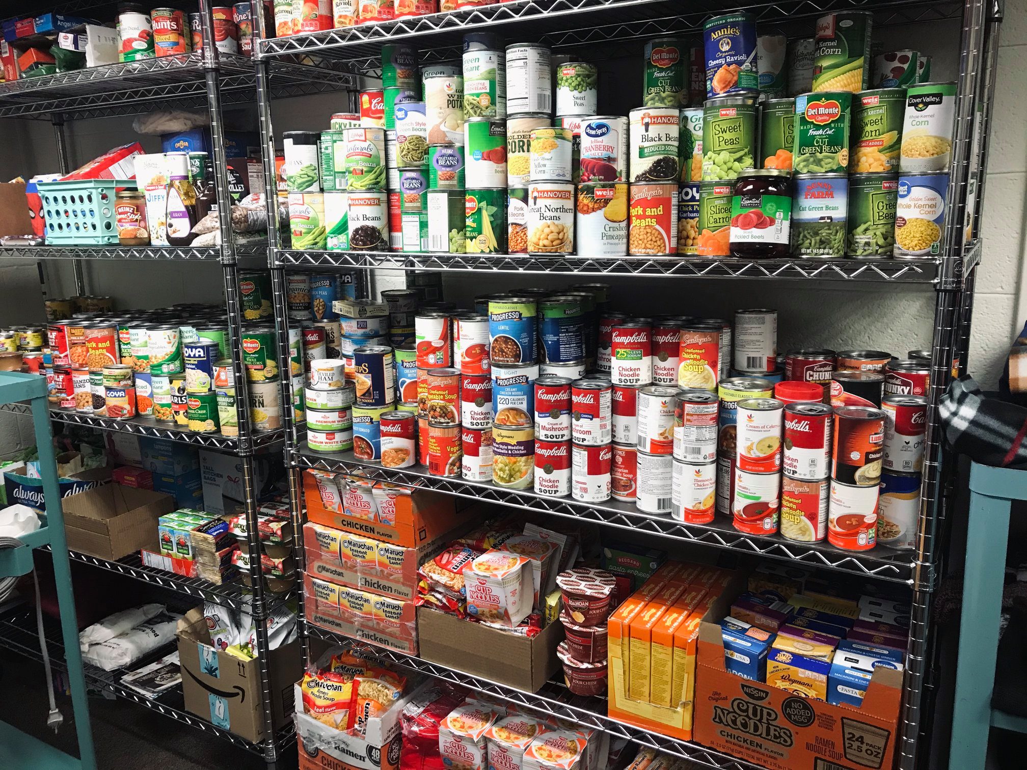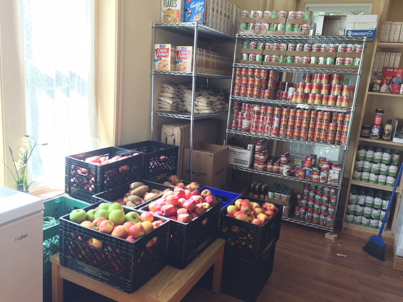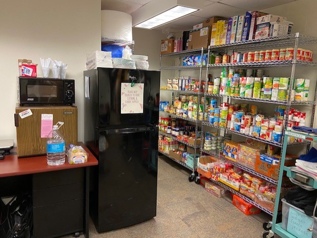 The pantry is stocked with a variety of non-perishable foods and products, including canned fruits and vegetables, peanut butter, jelly, snack bars, crackers, rice, sauce, pastas, etc. Personal care items and school supplies are also available. No appointments are necessary.