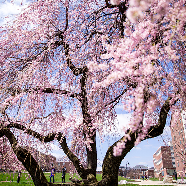 A beautiful blooming tree during a spring day, located on the South side of campus.