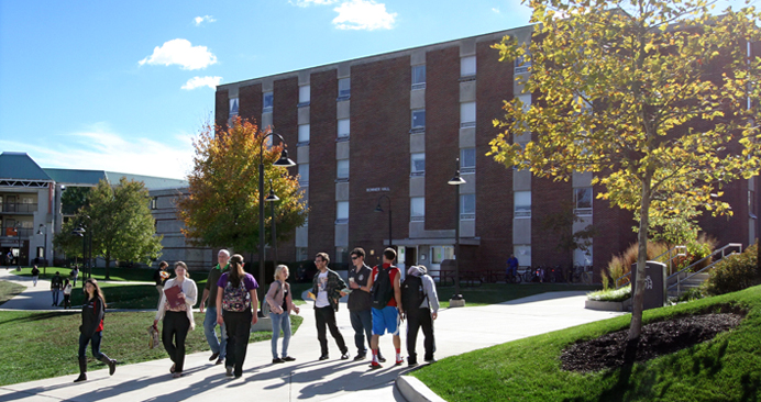 Known for its courtyard area located in the center of the building, Bonner Hall is conveniently located near the South Dining Hall. Bonner is a traditional residence hall that houses approximately 293 students and is co-ed by the wing. There is one Community Assistant per wing (two per floor). In addition to a large recreational room and kitchen area on the ground floor, residents have access to laundry facilities and study lounges on each residential floor.