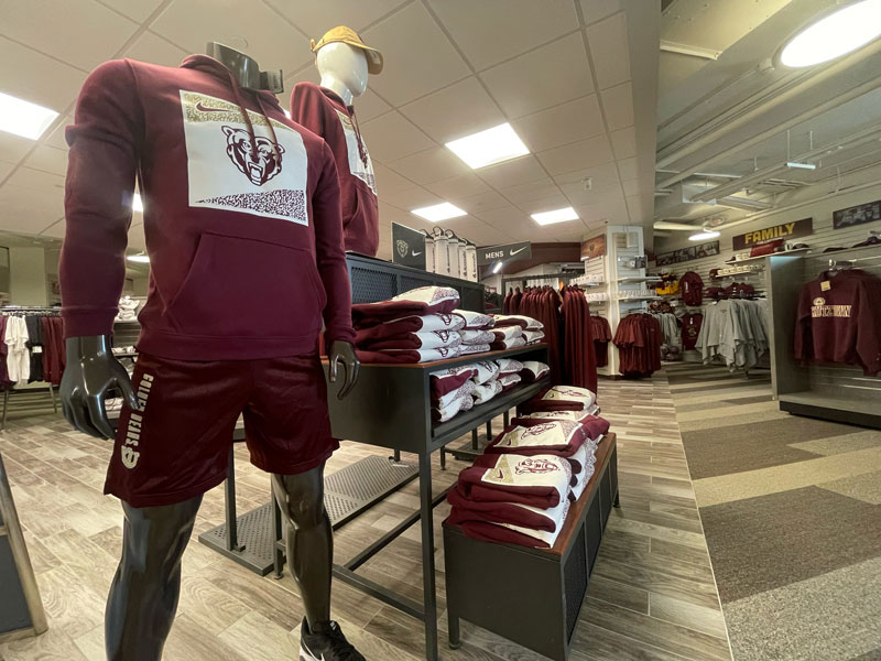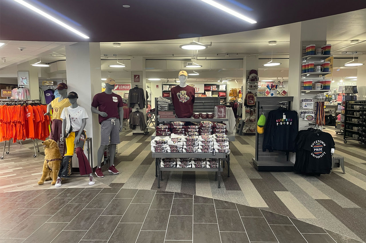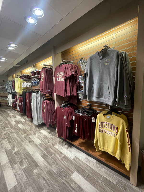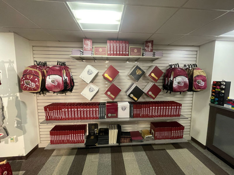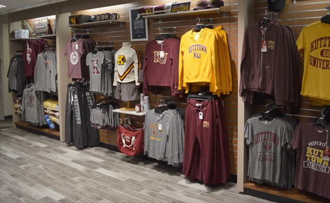 A display of various Kutztown merchandise in the campus store.