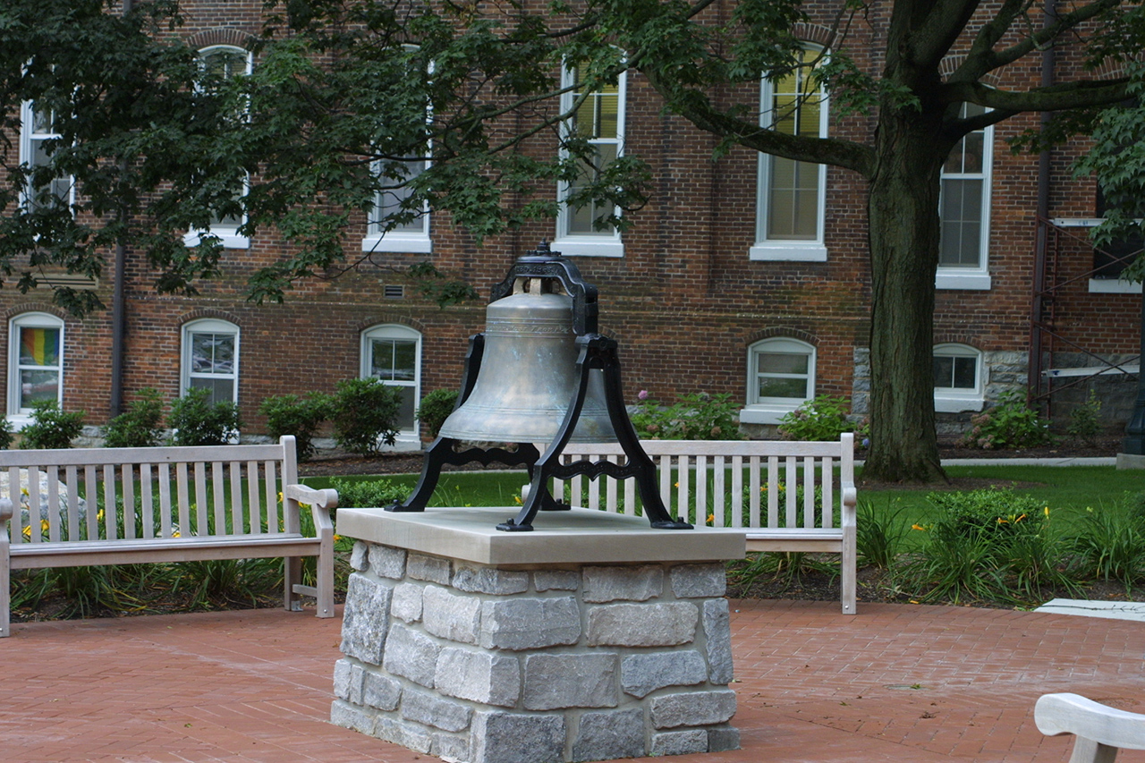 Formerly known as Bell Plaza, the grove is a courtyard area with seating and the original bell from the Old Main tower. The majestic trees and the bell, which rang in Old Main as long as a century ago, enhance the historical significance of the area.