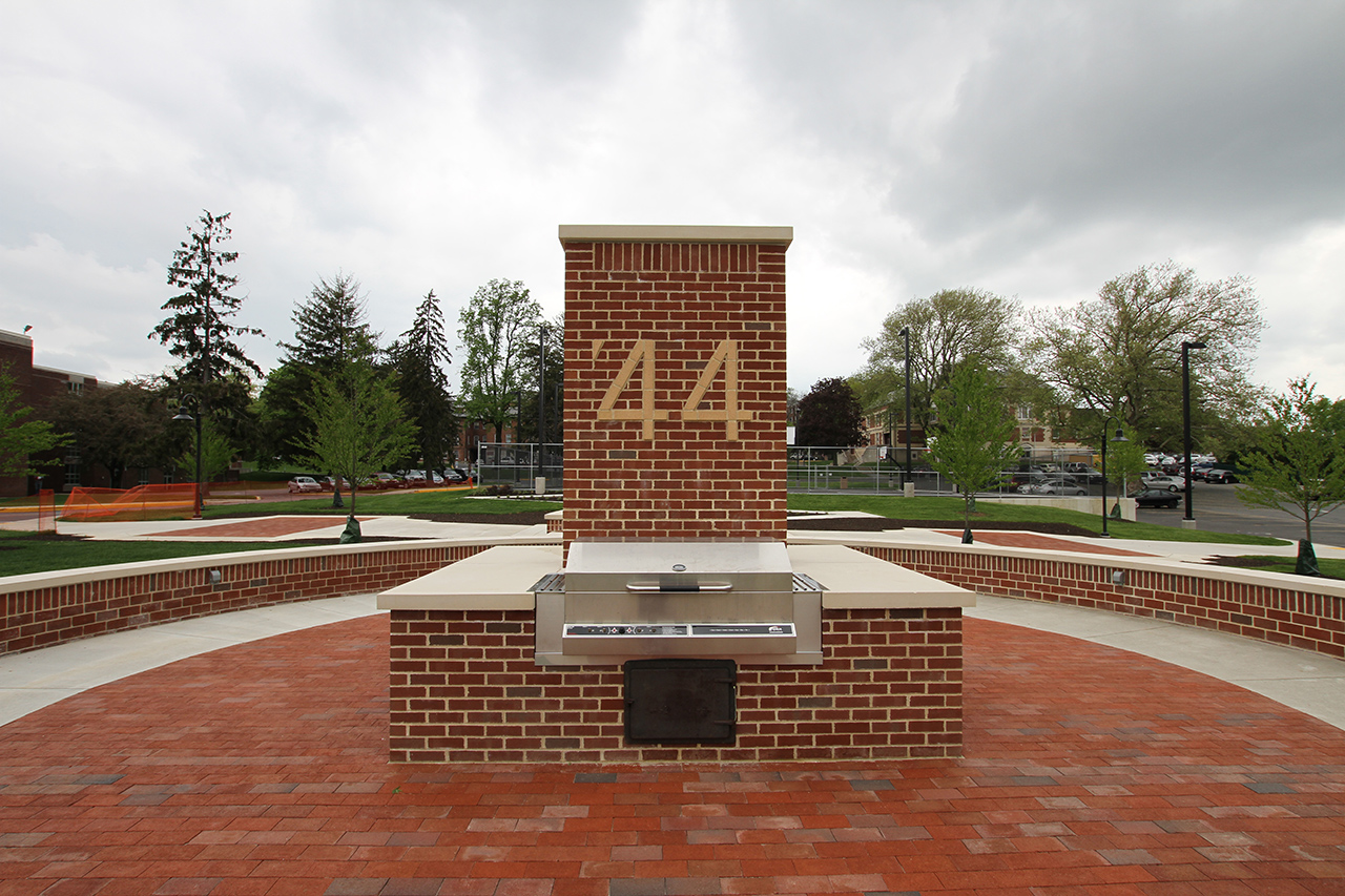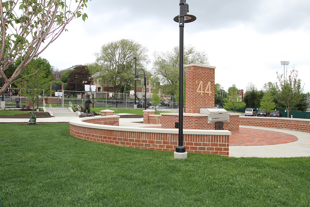In the foreground is Golden Bear Plaza, in the background is Andre Reed Stadium