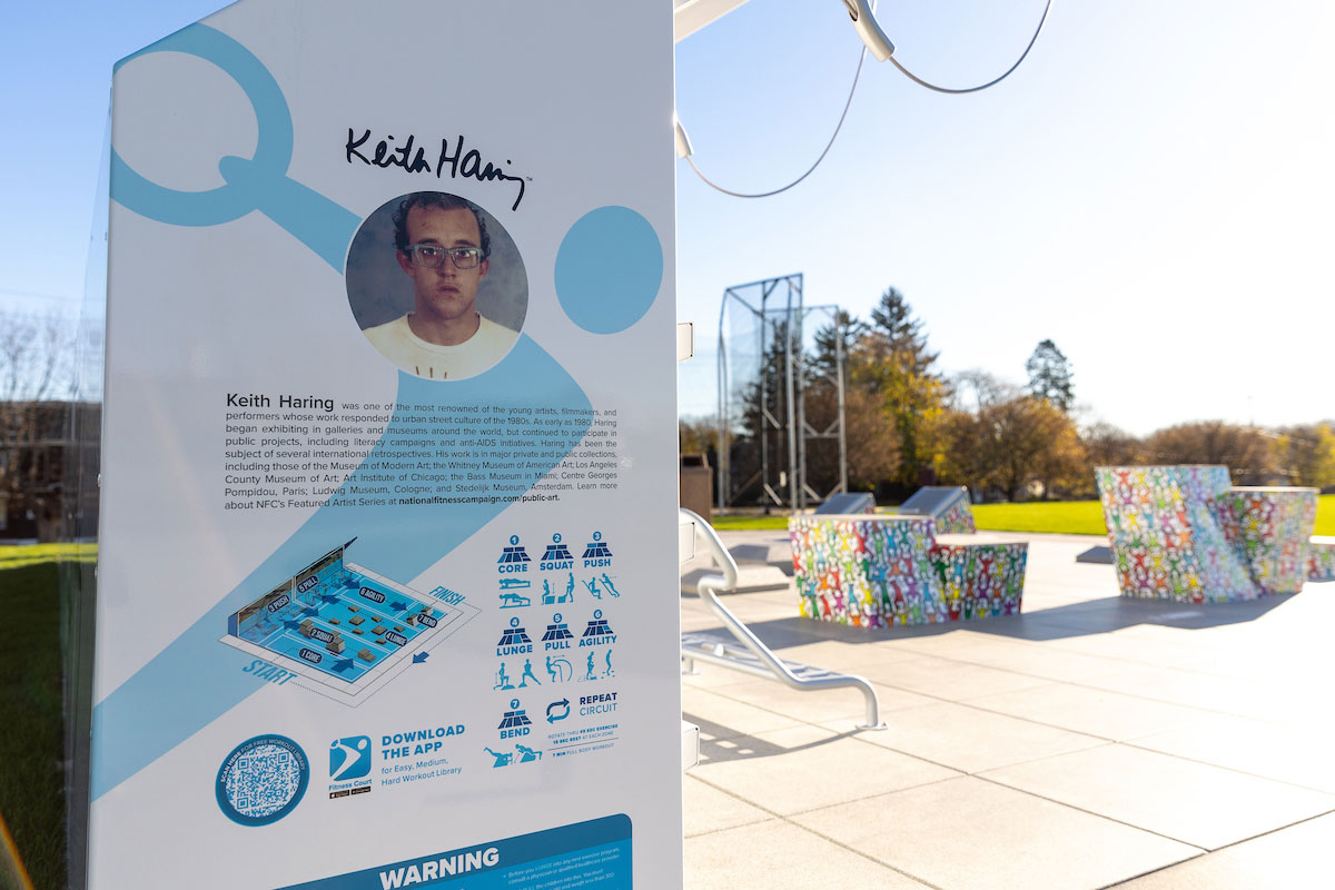 pictured is Keith Haring and a diagram of the Fitness Court.