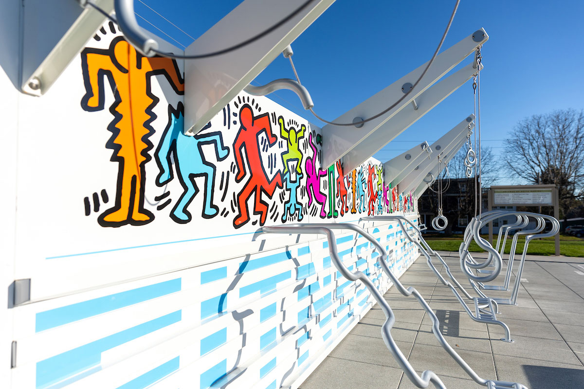 The Keith Haring Fitness Collection is a limited edition, outdoor, public art collaboration with the Keith Haring Foundation in New York and Outdoor Fitness Court and the National Fitness Campaign. The fitness court features a 32'x35' outdoor bodyweight circuit training system with 30 pieces of body-weight fitness elements, including seven full-body circuit training stations and a body-weight training wall.