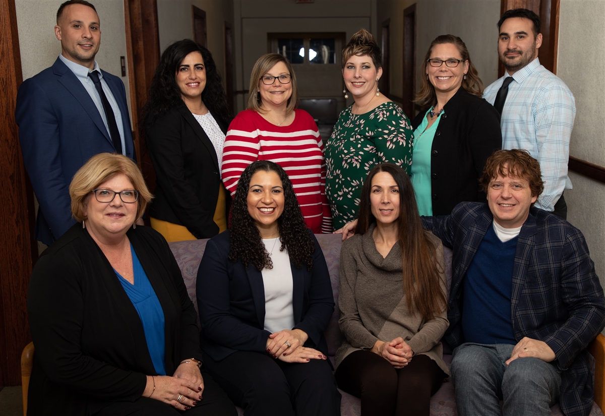Left to right standing: Mary Jo Rosania-Harvie, Tracy Driehaus, Amanda Holbrook, Michele White (faculty), Brenda Muzeta (faculty), Karen Ladley, Melanie Turrano, Kathleen Stanfa (faculty) Left to right kneeling: Jane Ammon, Karise Fink Mace, Lori Berryman, Paul Walsh