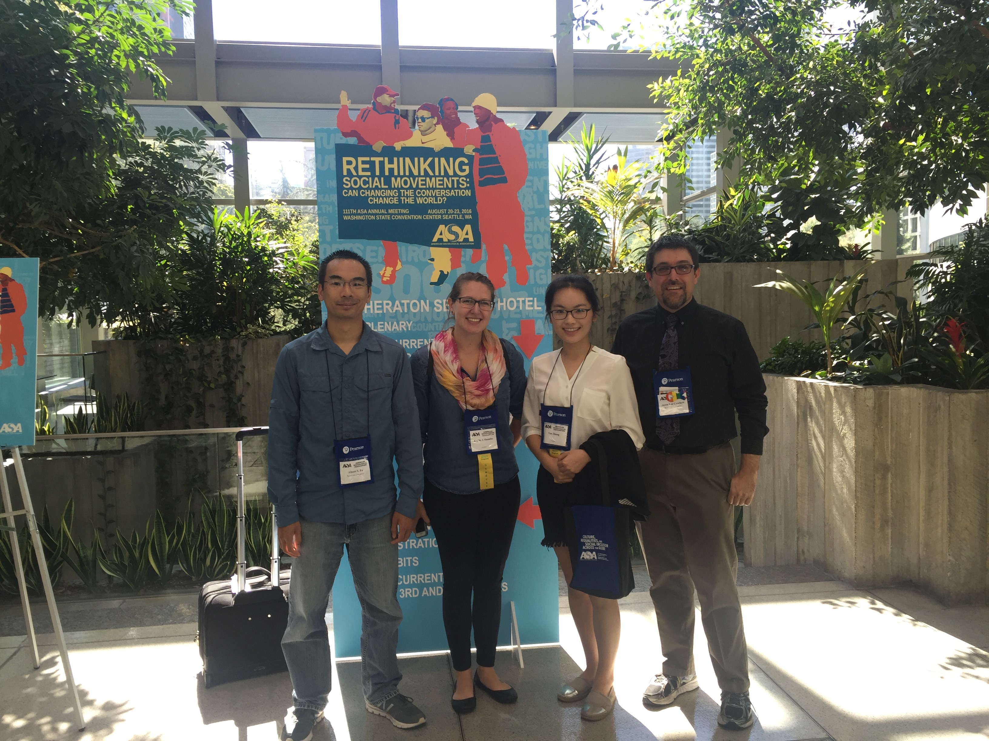 Kaylie Shambo and Yue Zhang participate in American Sociological Association's Honors Program in Seattle (pictured with Drs. Fu and Crockett)