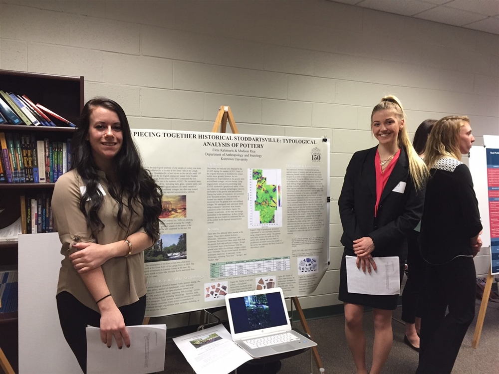 - Anthropology majors Madison Rice and Eleni Kalamaris presented a poster on the typological analysis of pottery from Stoddartsville at the Higher Education Council of Berks County Undergraduate Research and Creativity Conference in Reading, PA.