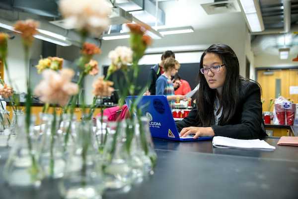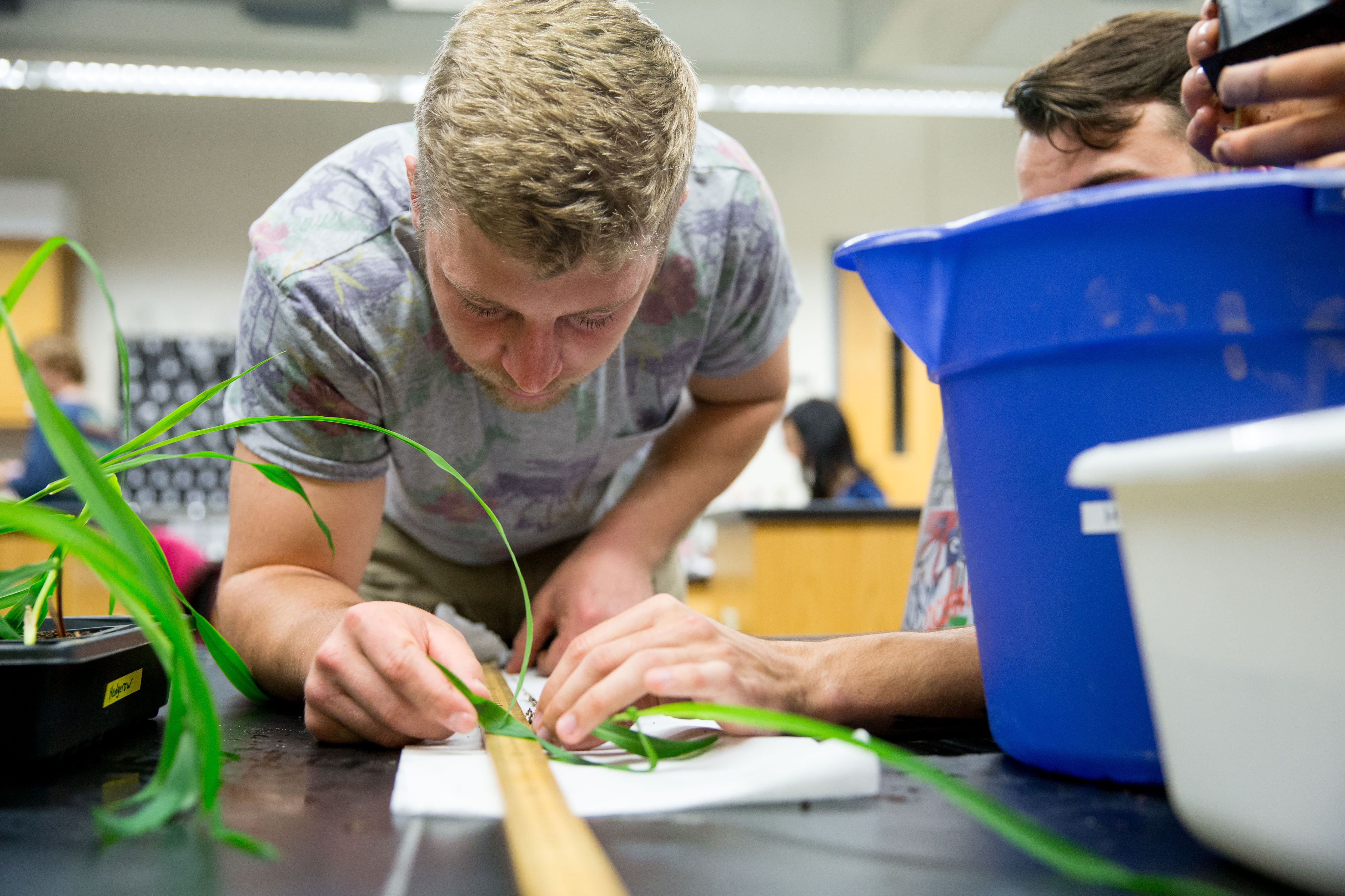 Students learn to key out plant specimens in the lab.