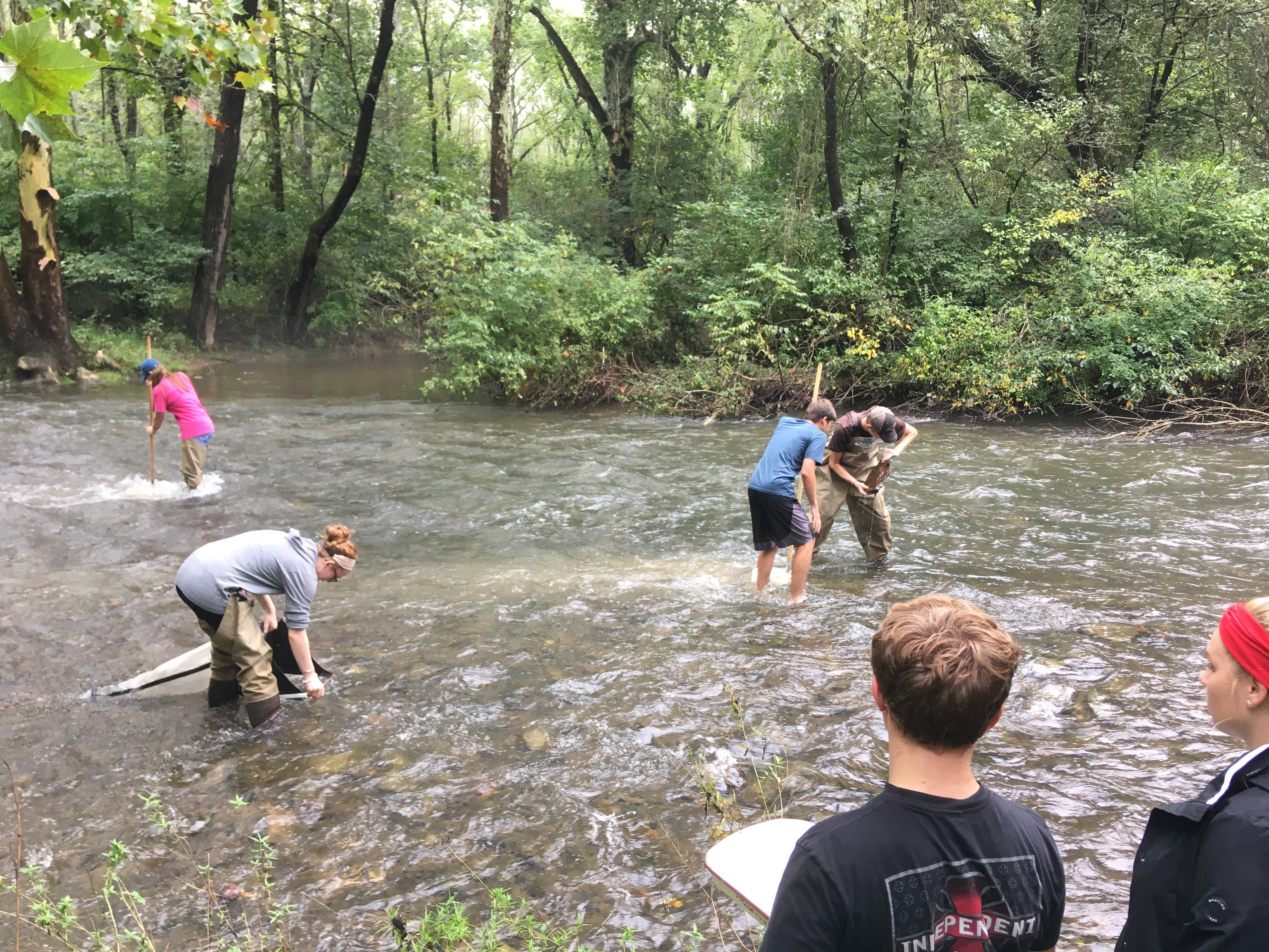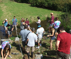 Students find and identify aquatic macroinvertebrates to assess the health of a stream.
