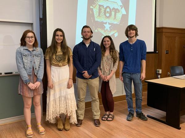 From left to right: Anna Grayek, Env. Sci.-Geography; Gabriella Ferreira, Geography; Joseph Tini III, Comm. Studies; Abbey Sauerwine, Business Admin.; Patrick Boos, Env. Sci.-Bio. (Not pictured: Ryan Harbison, Env. Sci.-Geography; Emily Quigg, Geography). Congratulations all!