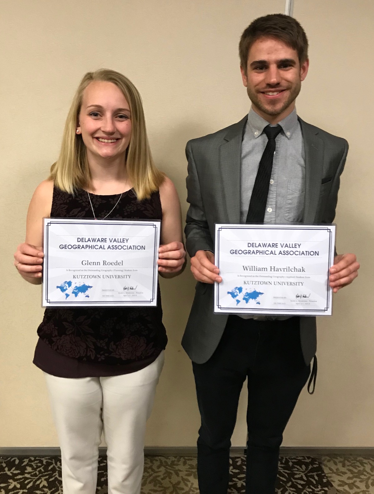 Glenn Roedel and William Havrilchak are co-recipients of the 2018 Delaware Valley Geographical Association Award for Outstanding Senior Geography Major.