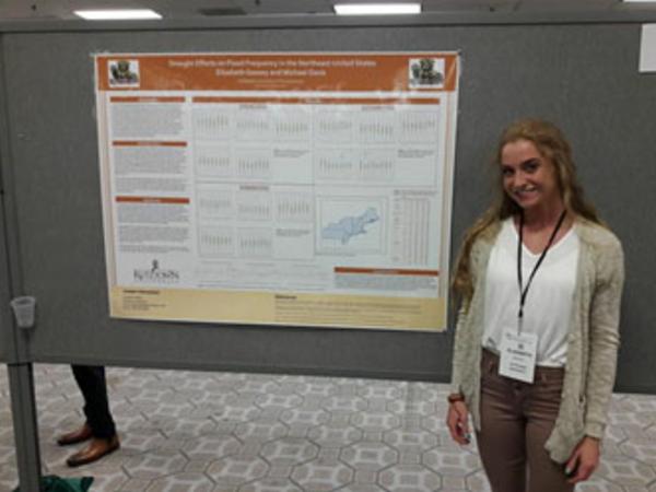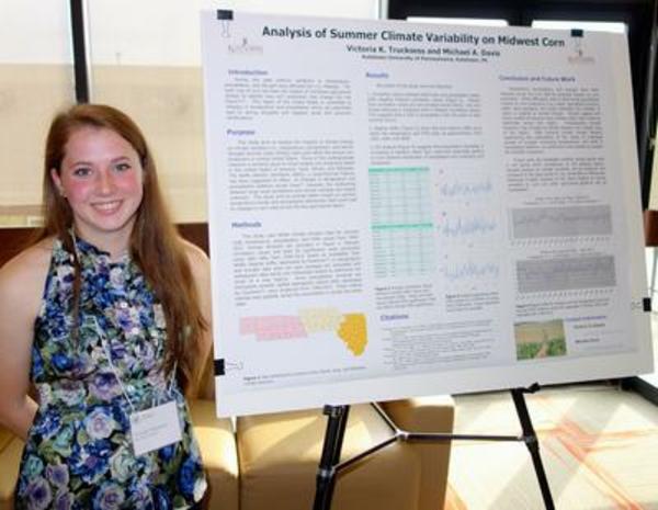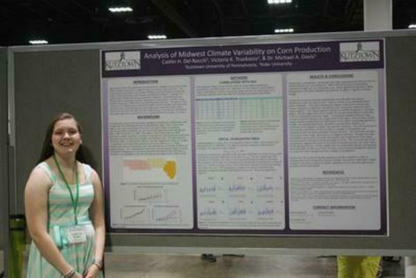 Sophomore Environmental Science-Geology major Victoria Trucksess presents her poster titled, Analysis of Summer Climate Variability on Midwest Corn, at the annual meeting of the Middle States Division of The American Association of Geographers held in Buffalo, New York, October 2013.