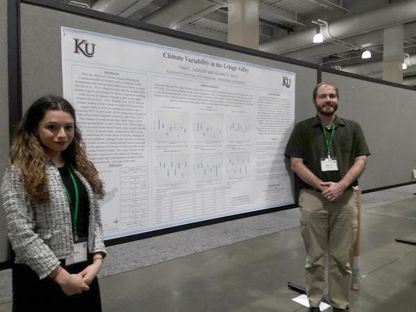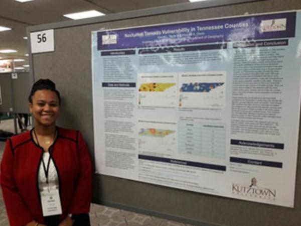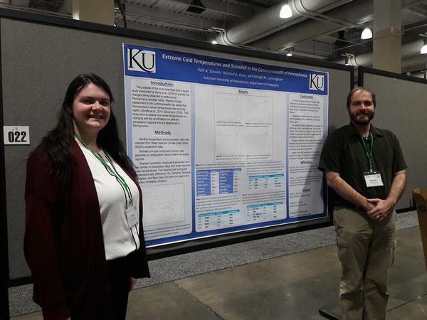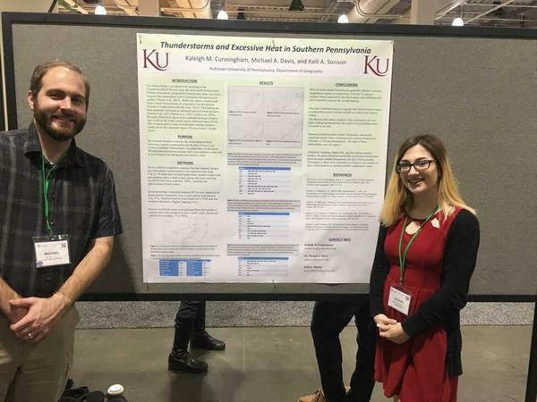 Environmental Geography minor Kaleigh Cunningham presenting her poster titled Thunderstorms and Excessive Heat in Southern Pennsylvania at the Annual Meeting of the American Association of Geographers, April 2017. Kaleigh's work was conducted under the guidance of Dr. Michael Davis.