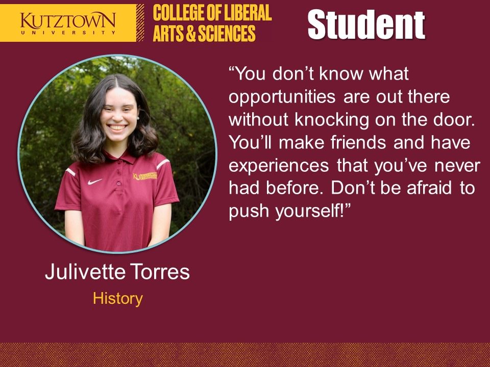 The Kutztown University Department of History strives to be one of the leading departments at the University and in the region.