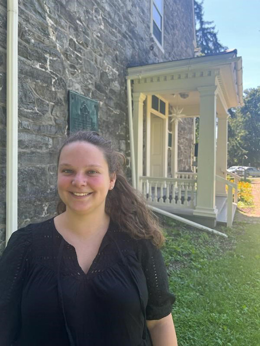 Brittany Le Roux, History major, recently shared with us her experience as an intern at the Moravian Historical Society during the summer of 2023: “At Moravian Historical Society, I got a chance to understand what it is like to be a museum curator. Each day presented a new opportunity with new responsibilities. I played a part in helping install new exhibitions, helped with a summer camp for kids, and was fortunate enough to handle artifacts in their collection that dated as far back as the 1700s. I learned a ton about the Whitefield House in Nazareth, PA where the Moravian Historical Society is currently housed and has been since 1857. I got to learn about not only Moravian culture, but also the culture of those they interacted with during their extensive mission work. I gained an abundance of knowledge about the surrounding areas of Nazareth and Bethlehem, Pennsylvania. This was a great experience to see what the day-to-day looks like for those who work in a museum and a chance to study the local history that surrounds me!”