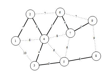 If the cables were free, we would want to minimize the total trench length. The bold edges in FIGURE 3 below represent the trenches that we would dig for this scenario. (This is the result of running Prim's Algorithm on the graph.)