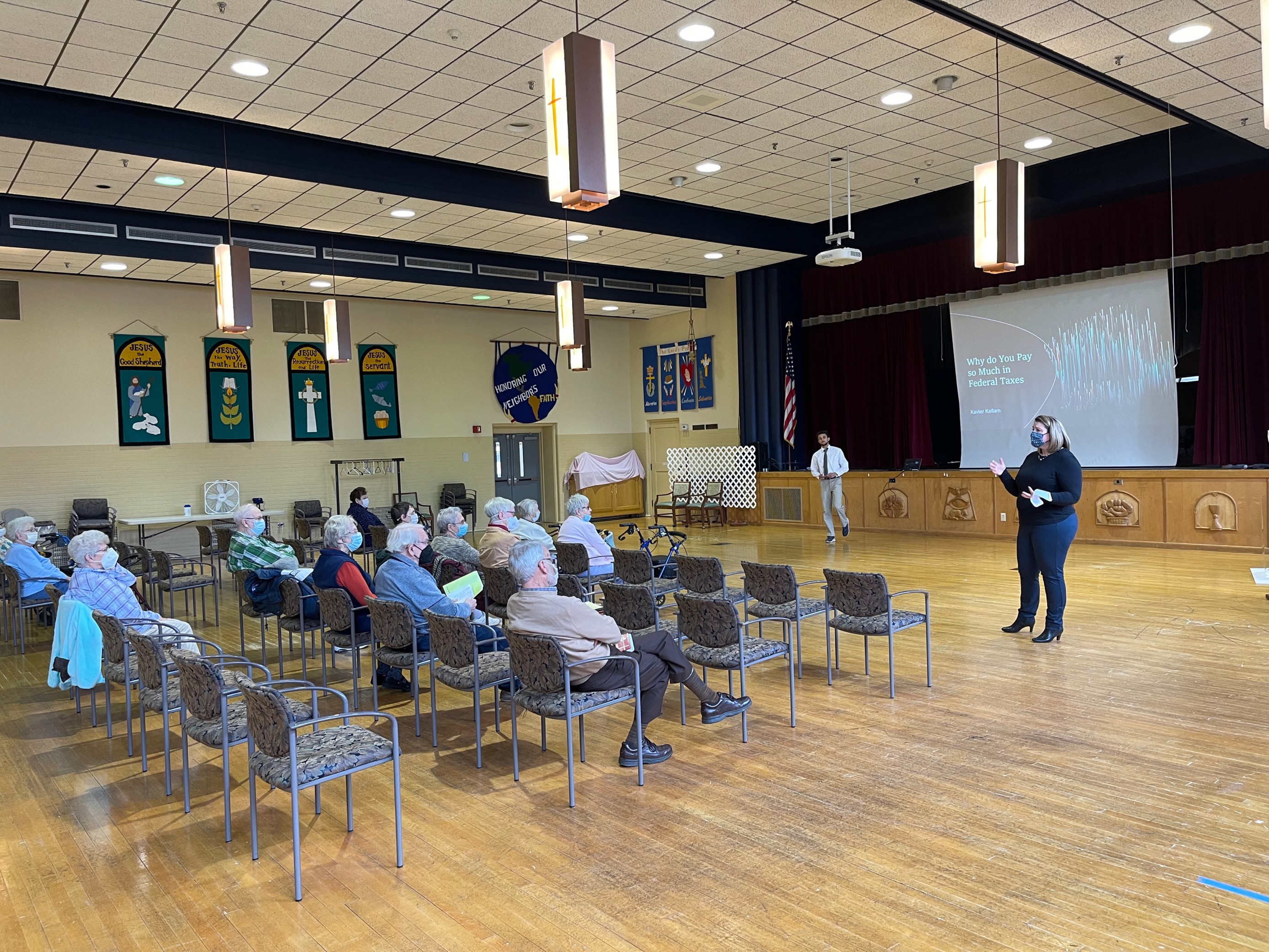On Monday, March 28, 2022, Jennifer Haas (BA Political Science '20; MPA '23) and Xavier Kellam (BS Public Administration '23) spoke to residents of Topton, PA on issues related to federal, state, and local government.