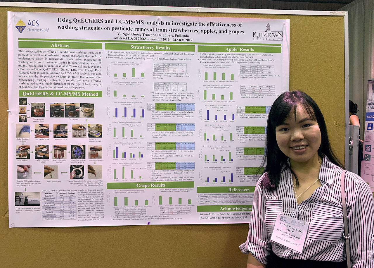 Huong Tran, freshman Biochemistry major, presents research poster at Middle Atlantic Regional Meeting (MARM) of the American Chemical Society on June 1, 2019 in Baltimore, MD