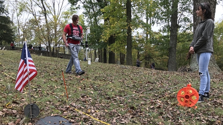 Geophysics is used to image the subsurface without digging. The instrumentation developed for this process benefits many geologic investigations, and it can also be useful in the field of archaeology. Geophysics surveys performed at The Old Charlestown Cemetery imaged a mass burial of Revolutionary War era soldiers. Ground penetrating radar and magnetometer surveys were used to provide the Charlestown Historical Society with the exact location of the burial so the society could establish a memorial marker for the soldiers. Visit the research webpage for a deeper look at this topic.