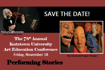 Welcome to the 78th Annual Art Education Conference at Kutztown University. This year's conference will bring to life the creative possibilities and utility of narrative pedagogy in teaching and learning in the art classroom. Narrative is a powerful form of discourse in the construction and reconstruction of knowledge and meaning in society. There are multiple layers of narrative discourse including individual, cultural, and societal myths. These pluralistic stories are shaped and defined in the social space of the classroom. This unique conference with an amazing line up of artists, performers, and educators is sure to awaken us to the potential of story.