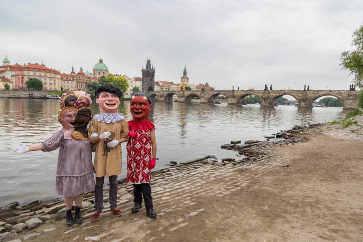 Looking like large puppet heads, it was “anima”, the root of “animation”, that led me to the making of the big heads, (or “capgrossos”, as they are called in Catalonia.) Anima is the soul or what breathes life into a being. But to bring attention to what is invisible, (the soul), I chose to mold its opposite in solid form: the persona, the mask, the ego, the big head. A series of multi-ethnic big head self-portraits titled “Everyman” allowed me the opportunity to explore the outer shell of our world’s personas, noting that if it were possible to wear each other’s skin, (or big head), the eyes of our souls would still be peering out from within.