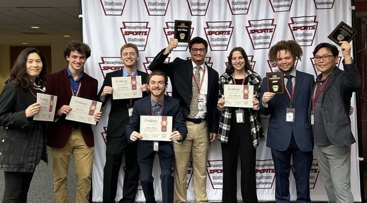 A huge congratulations to the Kutztown University Sport Management team – Andrew Batista, Bryan Pensyl and Kevin Schwartz – for earning an impressive second place in the Pennsylvania Sport Business Case Competition. Special recognition goes to Andrew Batista, who was named Most Valuable Presenter (MVP), for his exceptional professionalism and presentation skills. We also celebrate Dr. Jayden Kim, who was honored with the Outstanding Faculty Award, recognizing his dedication and leadership.