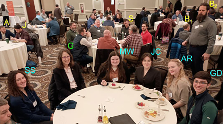 KU faculty and students attended the annual conference of the Pennsylvania Council of Professional Geologists on February 28, 2023. This is the society of licensed professional geologists in our region (including adjacent states). Kutztown University students accounted for 12 of 13 students at the meeting (most attendees are older, licensed PGs, so KU's involvement is seen by the professional community as truly exceptional). This photo excludes six current KU undergraduate geology students because they were off meeting with professionals and includes four KU geology alumni who are now important geologists in their companies.