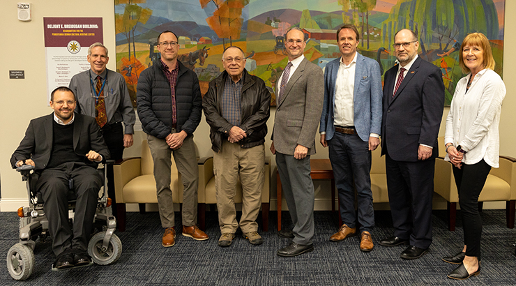 German Consul General, Till Knorn, of the Consulate General of the Federal Republic of Germany in New York, visited Kutztown University for a tour of the Pennsylvania German Cultural Heritage Center Monday, March 24. Knorn was accompanied by Anton Klix, Consul of the Political Department, for the tour. The tour included a visit to the farm, a tour of the galleries and archives at the Delight E. Breidegam Building. Over lunch, Consul General Knorn and Klix met with representatives of Kutztown University and the Borough of Kutztown to discuss the status of German American transatlantic educational and cultural partnerships. They also discussed future opportunities for collaboration between the consulate, the university and the borough.