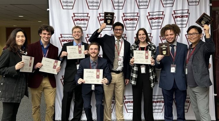 A huge congratulations to the Kutztown University Sport Management team – Andrew Batista, Bryan Pensyl and Kevin Schwartz – for earning an impressive second place in the Pennsylvania Sport Business Case Competition. Special recognition goes to Andrew Batista, who was named Most Valuable Presenter (MVP), for his exceptional professionalism and presentation skills. We also celebrate Dr. Jayden Kim, who was honored with the Outstanding Faculty Award, recognizing his dedication and leadership. Well done to all for representing Kutztown University with excellence.
