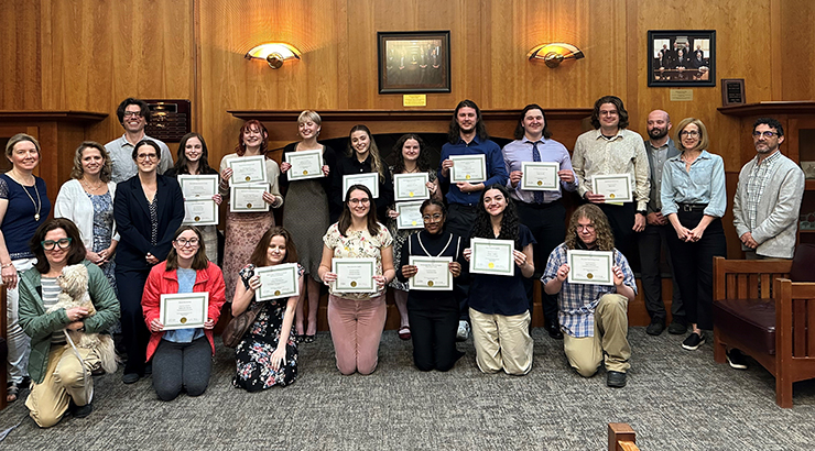 Congratulations to the recipients of the English department's honors, awards and scholarships. The English department met Monday, April 21, 250 MSU, to celebrate the achievements of its amazing students.