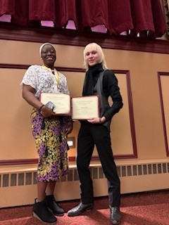 The Department of Social Work proudly announced the winners of the Diversity Prize during our annual Community Forum event. The Diversity Prize is sponsored by the Department of Social Work faculty to encourage students to celebrate their own diversity and view it from a strength-based perspective. We awarded one winner from the BSW program and one from the MSW program. Each winner received a $500 cash award. Our 2025 Diversity Prize winners are MSW student Oyinkansola Lawal (left) and BSW student Sebastian Hess (right).